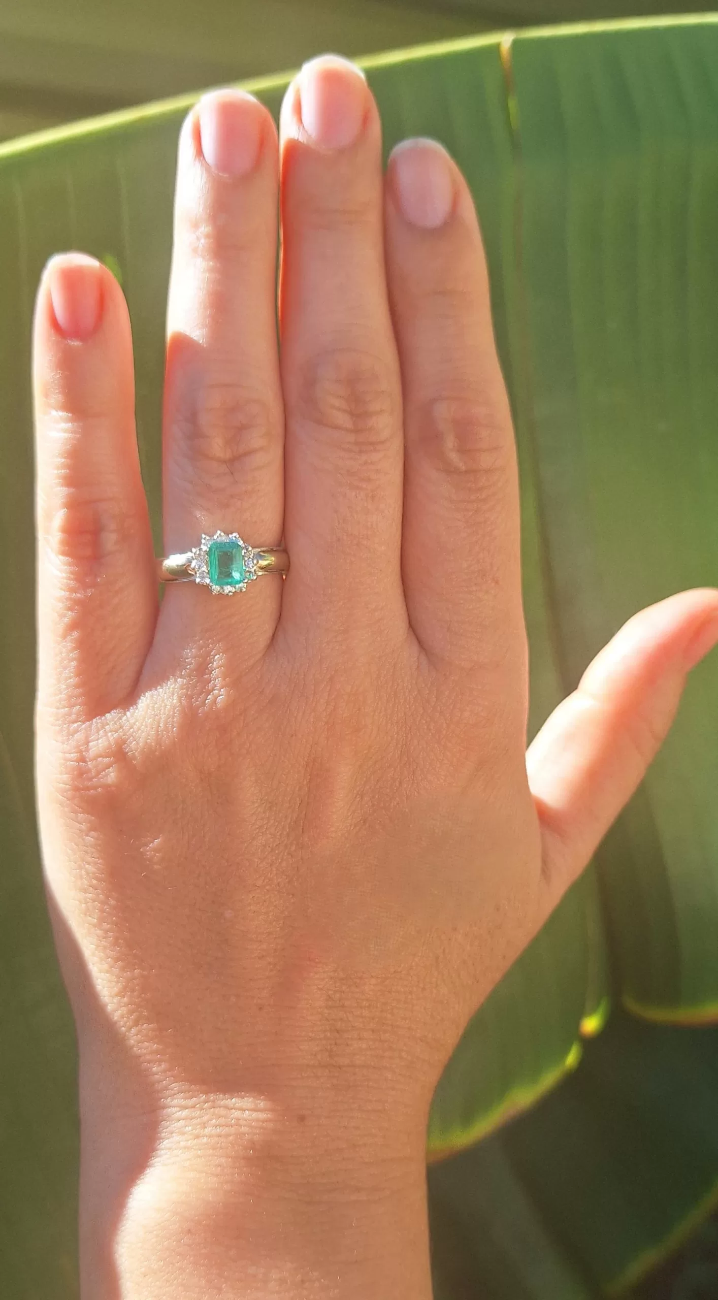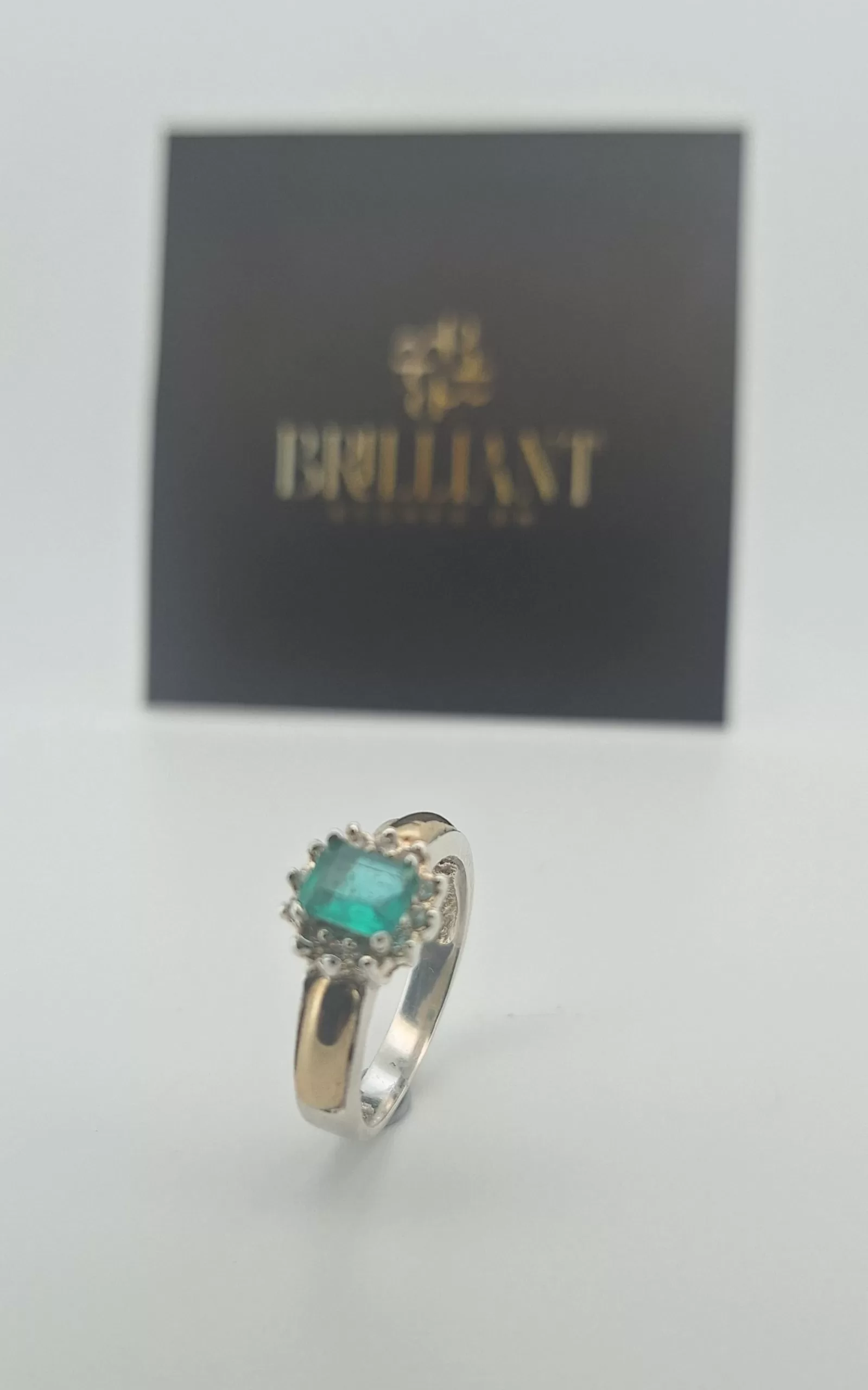 💍 Featuring a natural Colombian emerald, surrounded by delicate white stones, set on a two-tone band in sterling silver and gold. A stunning piece for a special occasion or a meaningful gift.