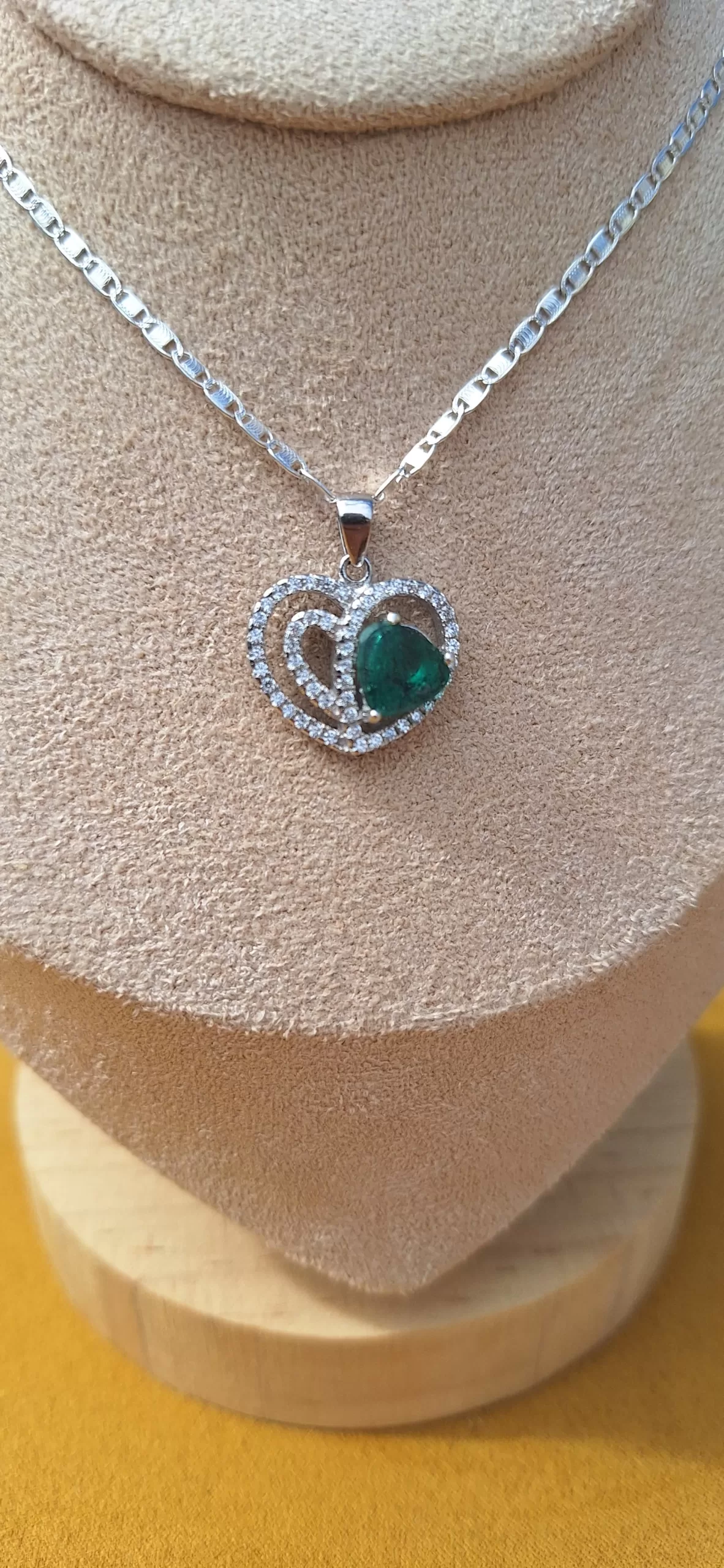 🔹 Pendant: Heart design with natural Colombian emerald